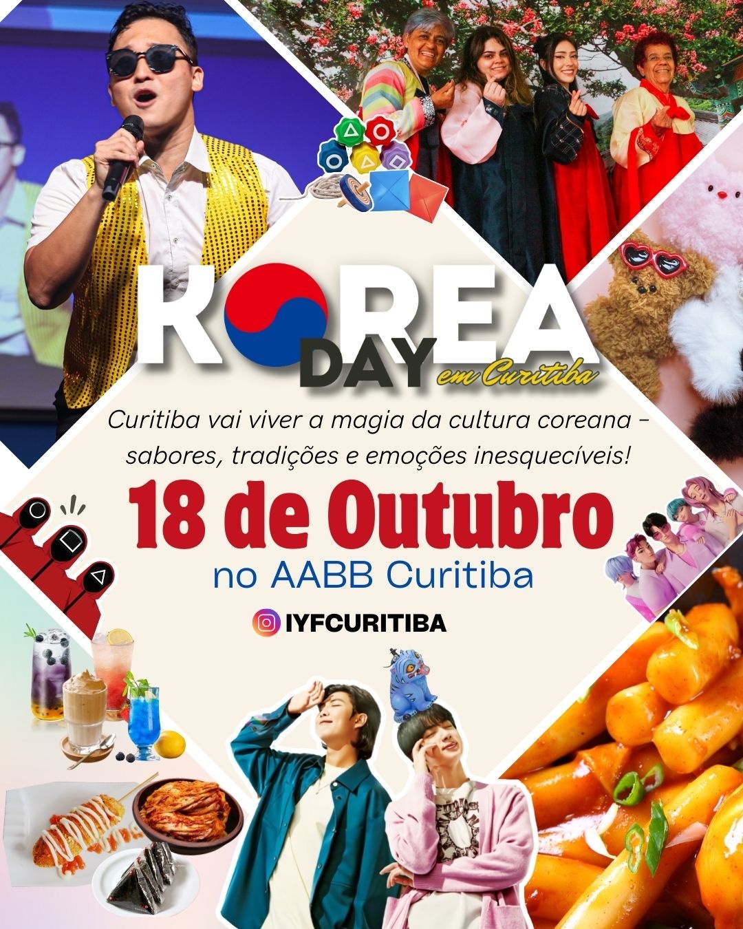 As inscrições já estão abertas pelo Instagram @iyfcuritiba ou diretamente pelo **Sympla – Korea Day em Curitiba**.