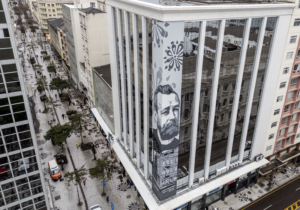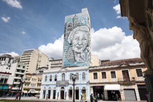 📍 Helena Kolody: em um prédio de 17 andares, o rosto da poeta acompanha um dos seus versos mais famosos: “Deus dá a todos uma estrela. Uns fazem da estrela um sol. Outros nem conseguem vê-la”.